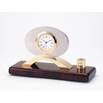 High Gloss Wooden base, Desk Clock with Brass Pen HolderProduct details